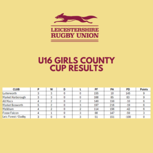 Plus an update on the U14, U16 and U18 girls County Cup tables.